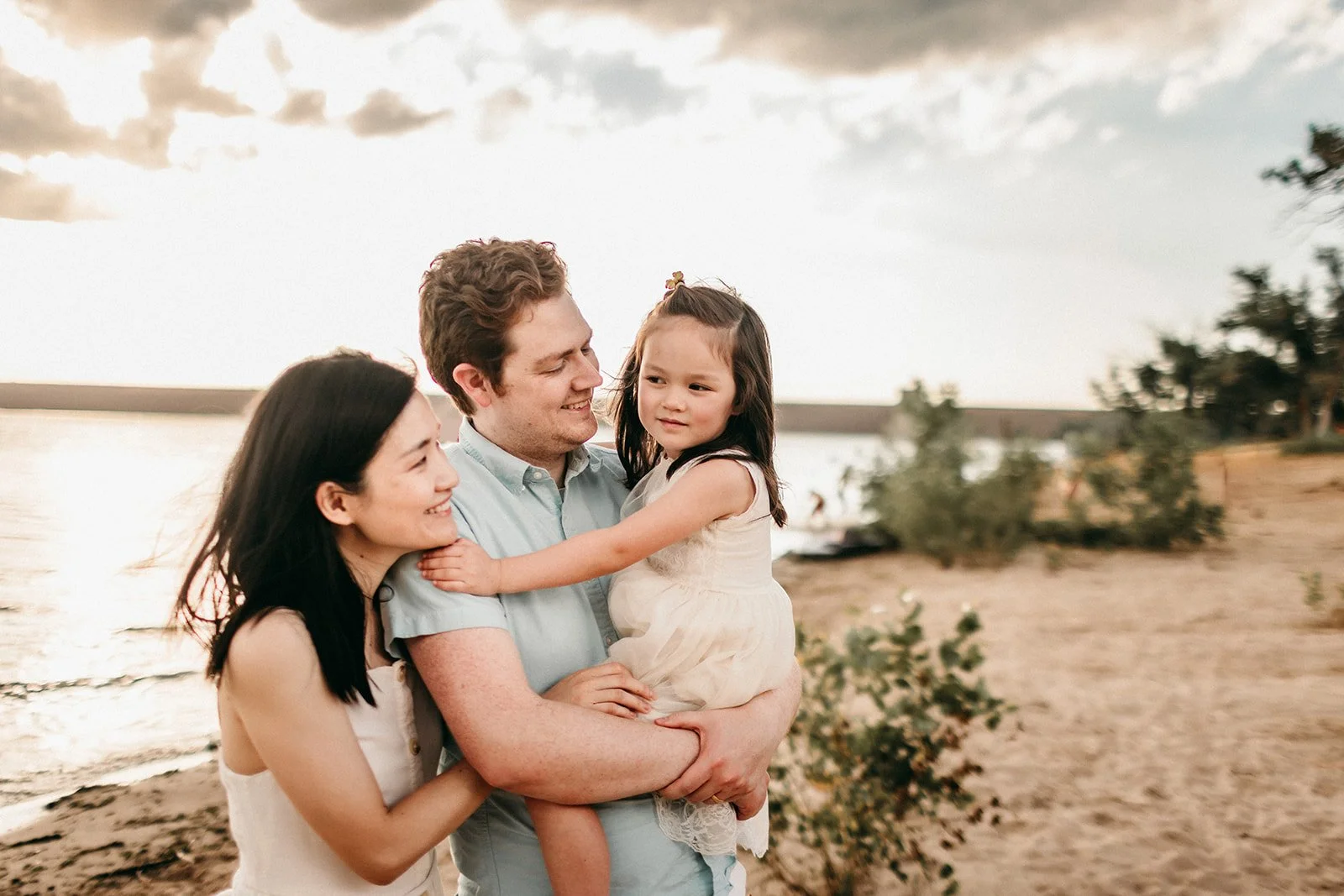 There's something undeniably magical about a sunset by the water—when the hues of twilight drape themselves over the landscape, and time seems to stand still just long enough for us to drink in the beauty of the moment. It's here, along the serene shores of Cherry Creek State Park, that I had the pleasure of capturing this beautiful family basking in the glow of Colorado's poetic evenings.